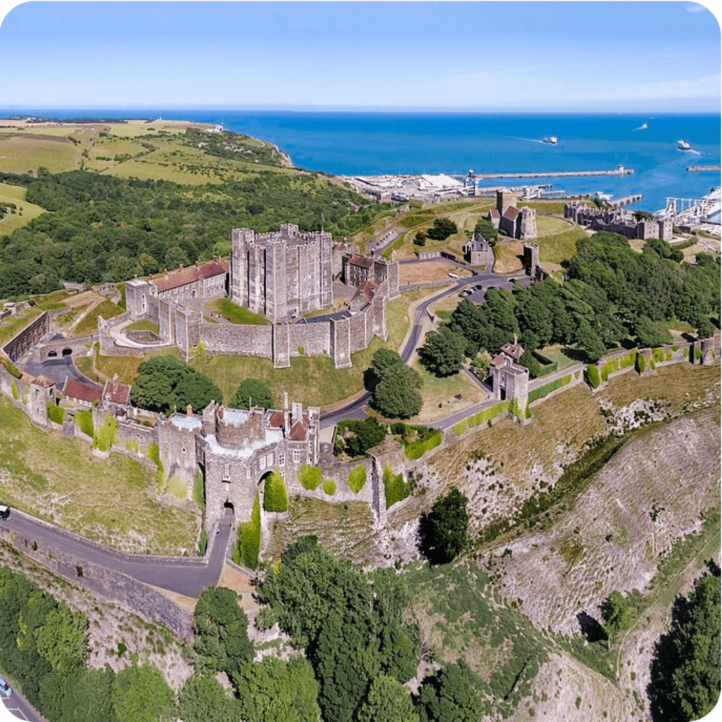 Following the coastline we'll pass Dover Castle; known as the ‘Key to England’ due to its historic significance. This is one of the largest and most important fortresses in Britain, dating back to the 11th century. Then we’ll arrive at our next location; the world-famous White Cliffs of Dover in Kent, one of England's most iconic natural landmarks. Towering over 300 feet above the sea, these gleaming chalk cliffs offer sweeping views across the English Channel - on a clear day it’s possible to see France in the distance. These famous Kent cliffs have long been a symbol of hope, defence, and homecoming, especially during wartime. We’ll have plenty of time here to walk the cliff paths, breathe in the sea air, and admire one of the most breath-taking views in England.