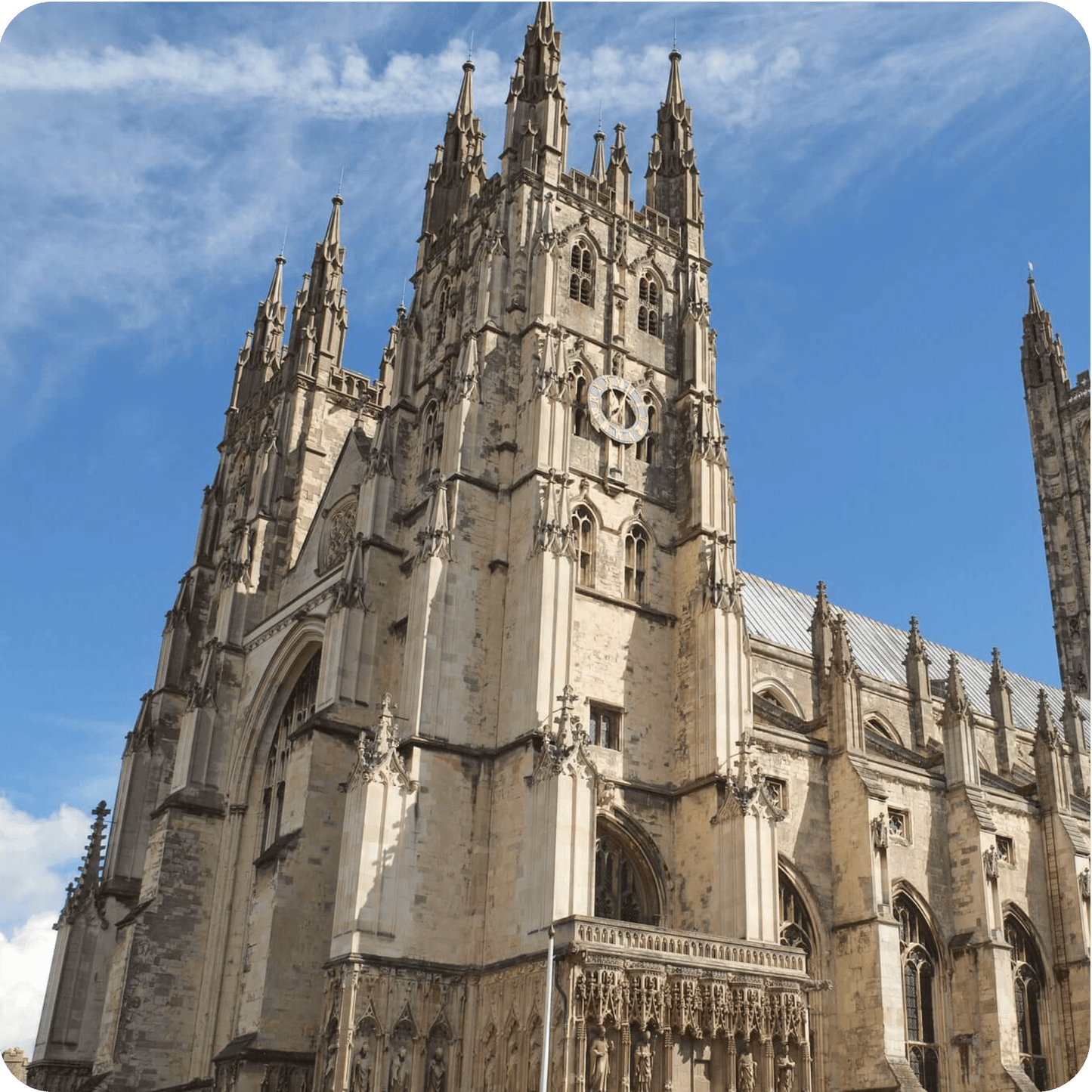 Our day trip to Canterbury from London begins by departing the 'City' and passing famous landmarks like the Tower of London, Tower Bridge and the Canary Wharf financial district. It won’t be long before we are travelling through the heart of the charming Kent countryside, known for its green hills, fruit farms, vineyards and flower fields.